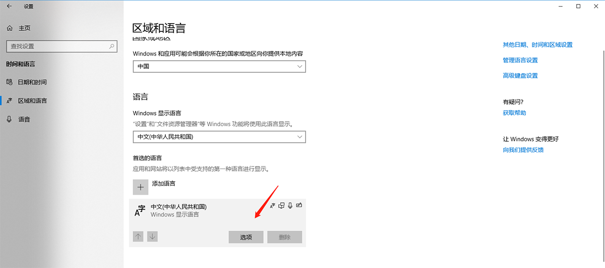 左下角【開始】圖標(biāo)----【設(shè)置】----【時間和語言】----【區(qū)域和語言】----右側(cè)語言項中找到 windows顯示語言,點擊選中----點“選項”按鈕----在新窗口中往下看 鍵盤 列表,看如果有 美式鍵盤,選中----刪除。